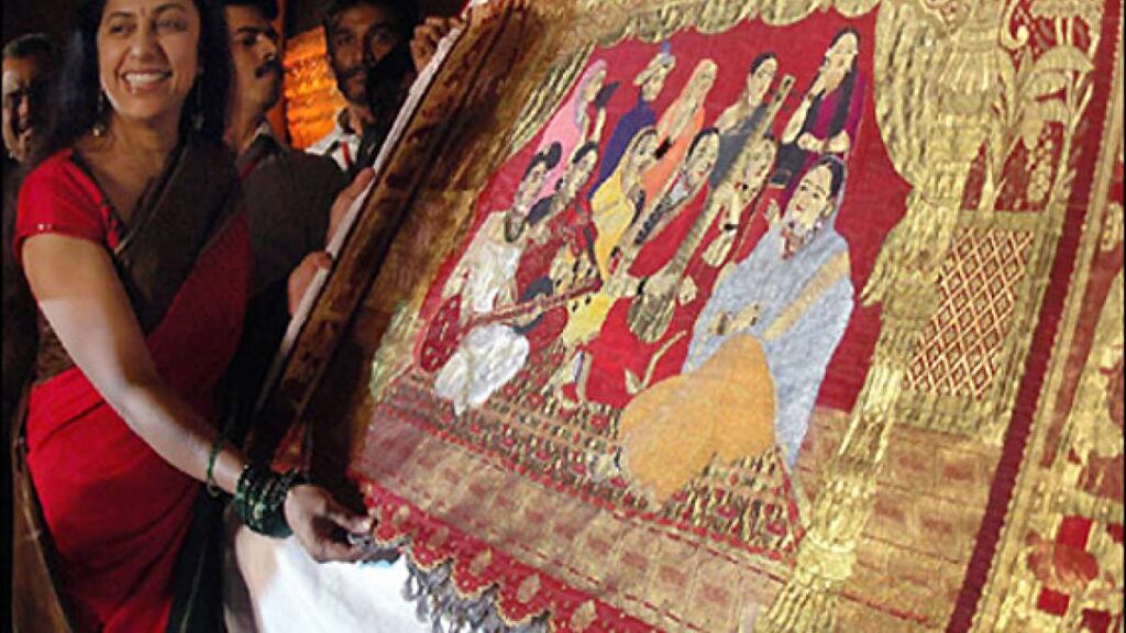 Named ‘Vivaah Patu’ sari, it features the reproduction of 11 paintings by Indian art icon Raja Ravi Varma and it was designed by the director of Chennai Silks, Sivalingam.