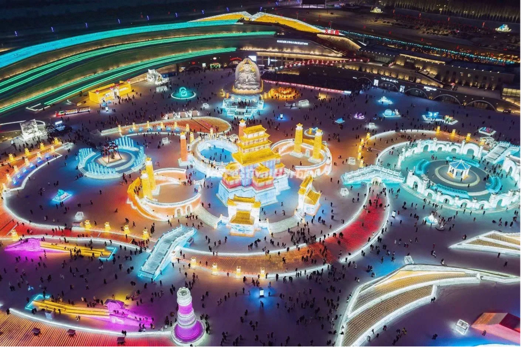 The park features a variety of ice and snow sculptures, slides, and attractions, all illuminated by vibrant lights, creating a mesmerizing winter wonderland. Visitors can explore intricate ice carvings, participate in snow activities, and enjoy cultural performances, making it a popular destination for both domestic and international tourists.
