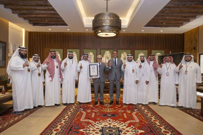 Guinness World Records adjudicators were on site to certify the achievement, officially recognizing Diriyah Co. for setting a new world record. The certificate was presented to company leadership during a celebratory ceremony that followed the lesson.