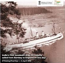 Historic Voyage: Undertook its first journey under the Indian shipping flag on 5 April 1919.
