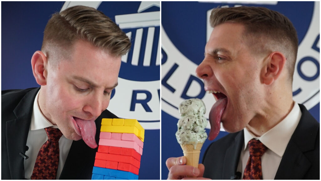 In an extraordinary feat of skill and flexibility, the man with the world’s longest tongue has added another remarkable achievement to his record-breaking collection. The Salinas, California resident, who already held the Guinness World Record for the longest tongue (male), has now set a new title for the fastest time to remove five Jenga blocks using only his tongue.