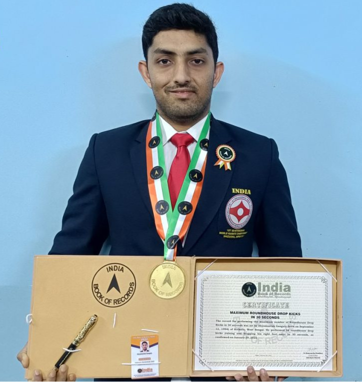 In a stunning display of martial arts skill and athletic precision, Shyamantak Ganguly of Kolkata has set a remarkable record for the maximum number of roundhouse drop kicks in 30 seconds.
