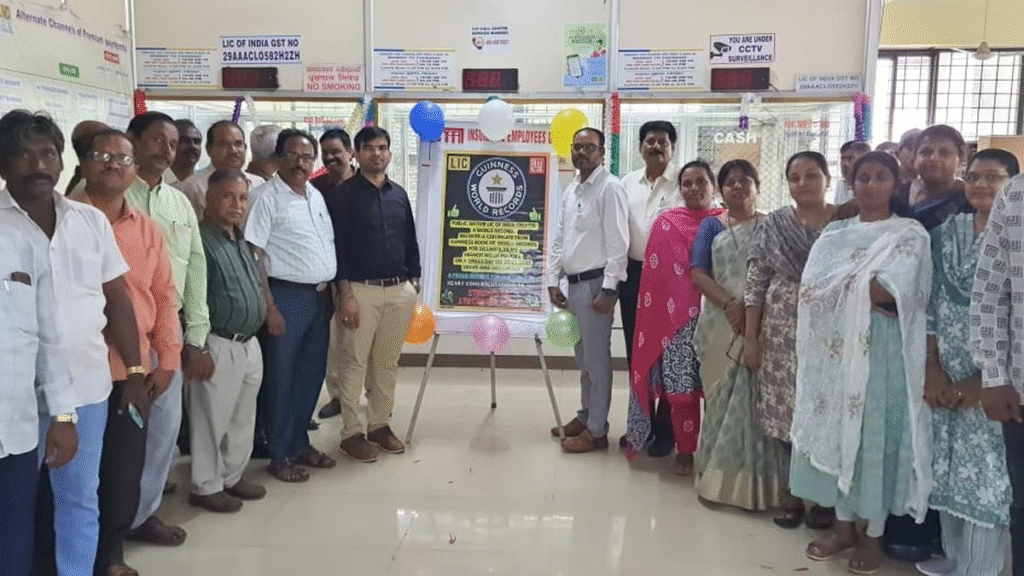 A special poster commemorating the Life Insurance Corporation of India’s (LIC) remarkable achievement of entering the Guinness Book of World Records was unveiled on Monday at the LIC Branch-2 office in Ballari.