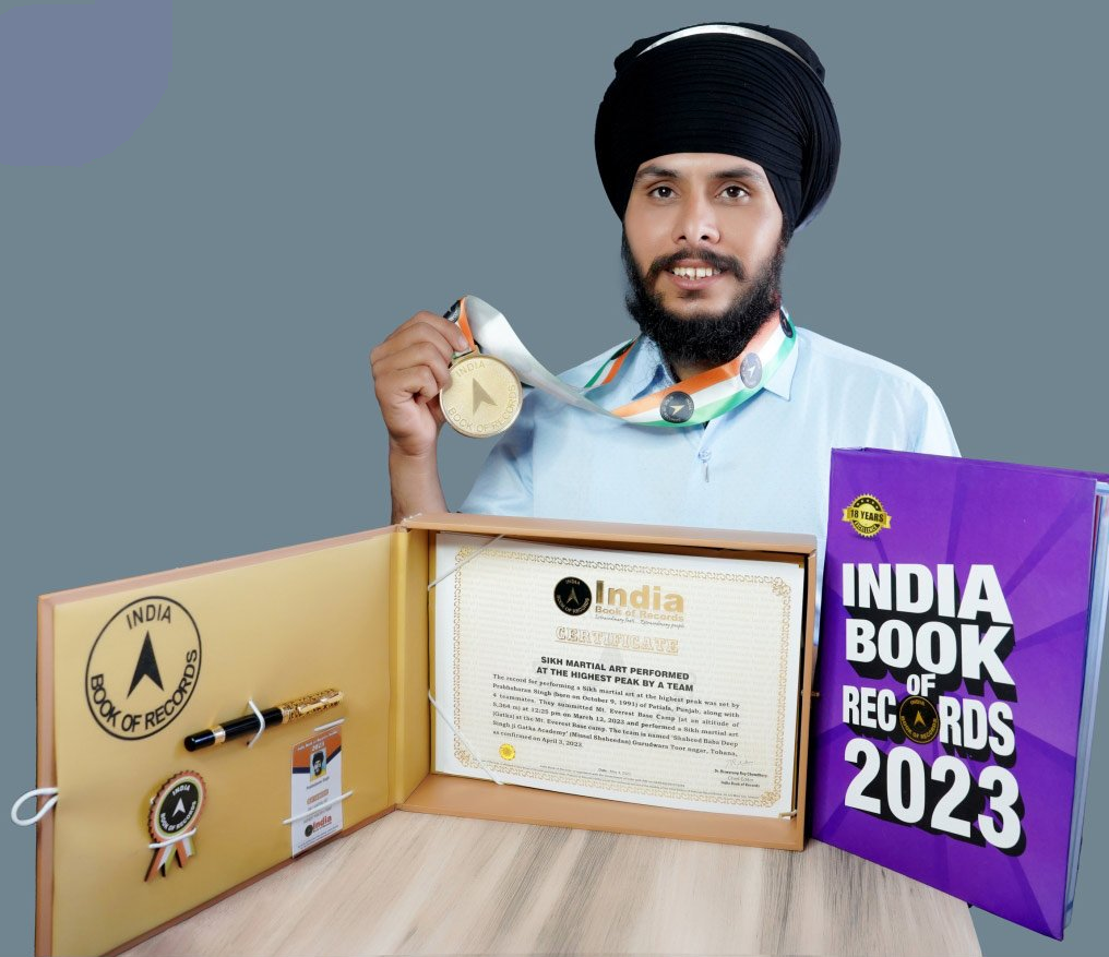 The record-breaking event was officially confirmed on April 3, 2023, marking the highest known altitude at which Sikh martial art has ever been performed by a team.