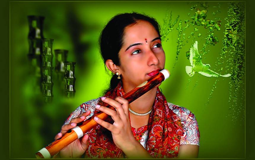 Hailing from Andhra Pradesh, Jayaprada showcases her musical prowess by performing with a range of bamboo flutes – including base, top, and medium – as well as the Western key flute for improvisations, a rare blend in the traditional Carnatic format.