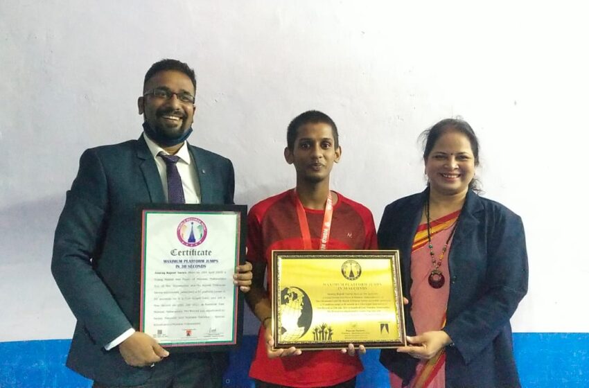 Anurag Rajesh Varma, born on April 25, 2003, a promising young martial arts player from Mumbai, has set a new record with an incredible feat of agility and speed. Son of Mrs. Shyamadevi and Mr. Rajesh Tribhuvan Varma, Anurag successfully completed 32 platform jumps in just 30 seconds on a 2-feet high table.