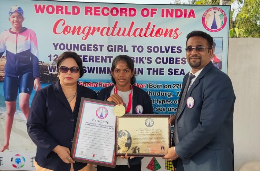 The event took place at Vengurla, Sindhudurg, Maharashtra, where Sneha’s exceptional performance set a new world record, inspiring swimmers and puzzle enthusiasts alike.