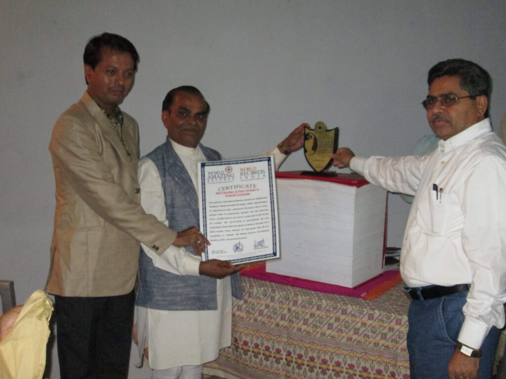 Vallabhdas Jerambhai Dobaria, popularly known as “Shree Das – Sarsaio,” from Sarsai village, Vishavadar Taluka, Junagadh District, Gujarat, has made an extraordinary literary contribution to Gujarati poetry. Over a prolific career spanning 35 years—from October 23, 1972, to October 23, 2010—he has authored an astounding total of 12,345 poems in the Gujarati language.