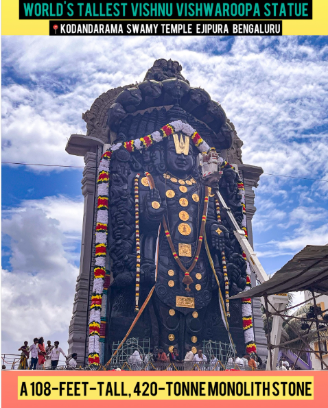 In a historic event today, the world’s tallest Vishnu Vishwaroopa statue was unveiled in Bengaluru, Karnataka. The statue, towering at an impressive 108 feet, represents Lord Vishnu in his universal cosmic form—a powerful symbol of divinity and protection in Hinduism.