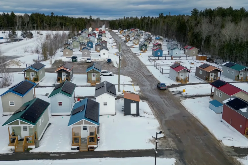 The newly developed tiny-home community features rows of colorful, energy-efficient houses designed to offer long-term stability to people struggling with housing insecurity. Each unit includes essential amenities such as heating, electricity, bathrooms, and compact kitchen spaces — ensuring residents can rebuild their lives with dignity and safety.