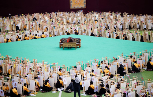Large tents were set up for live painting sessions, where the public could observe the creation of Thangka art from the first brushstroke to the final blessing.