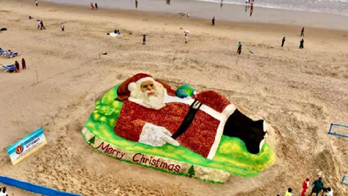 The celebrated artist unveiled his latest record-breaking sand art installation on the shores of Puri, showcasing his signature creativity, scale, and meaningful messaging. The magnificent artwork, created especially to mark the festive spirit of Christmas, symbolizes peace, unity, and global harmony, values that resonate deeply during the holiday season.
