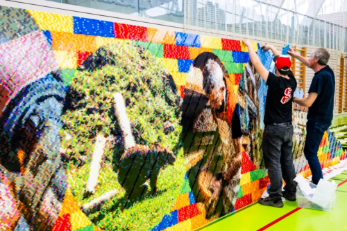 The mural stretches across a vast public space in the city, depicting intricate scenes and vibrant imagery that reflect Zurich’s culture, heritage, and contemporary spirit. Artists and volunteers collaborated over several weeks to assemble the mural, ensuring each brick was precisely placed to achieve the desired visual effect.