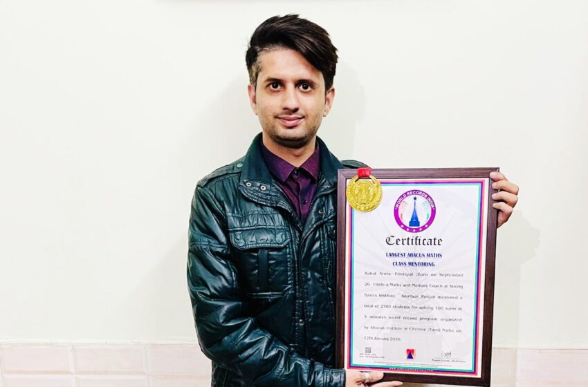 Rahat Arora, Principal and Maths and Memory Coach at Strong Basics Institute, made a remarkable contribution to the world of mental mathematics by mentoring an astounding 2700 students in a record-setting event.