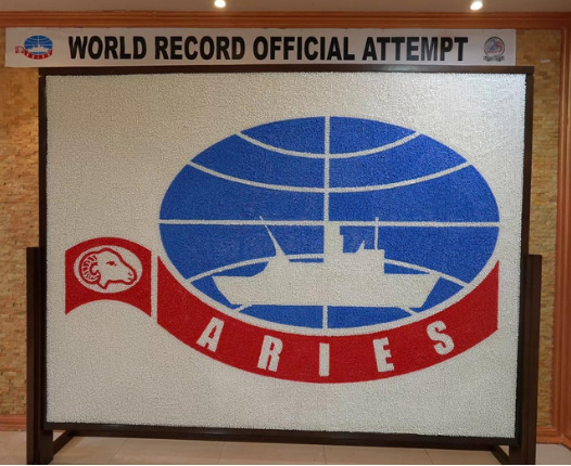 In a spectacular tribute to its Silver Jubilee Year celebration, Aries Marine & Engineering Services LLC, headquartered in Sharjah, UAE, achieved a New World Record by creating the largest mosaic logo of the company using pushpins.